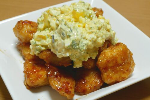鶏むね肉でチキン南蛮を作りました。 お寿司のお供で買ったガリがあったので、ガリタルタルソースを作って添えました。 皮なし鶏むね肉1枚、照り焼きのタレ大さじ1、酢大さじ1/2 ゆで卵2個、ガリ適宜、カロリーオフマヨネーズ大さじ2、青さ海苔適宜 鶏むね肉…