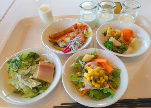 2025年夏休み北から南へ旅する~北海道洞爺湖温泉 ザレイクビューTOYA乃の風リゾート朝食ビュッフェ、数ある食べたいものから選んで こんな感じで盛って来ました。 お野菜の料理もいっぱいで胃袋が足りません。 野菜サラダはノンオイルドレッシングで シーザ…
