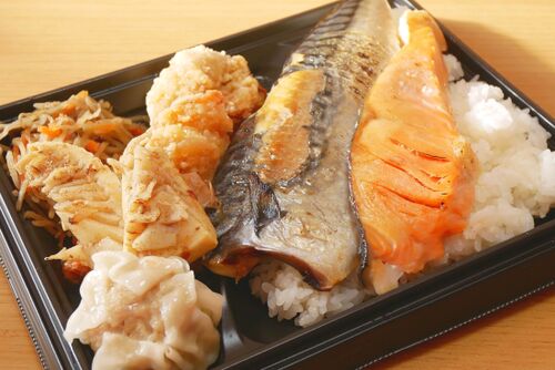 ロピアといえばお肉なので、お肉の弁当は多いのですが、焼き魚弁当があったので 食べてみよう。 焼き魚は2種類入っていて、このボリュームで680円(税別)はいいですね。